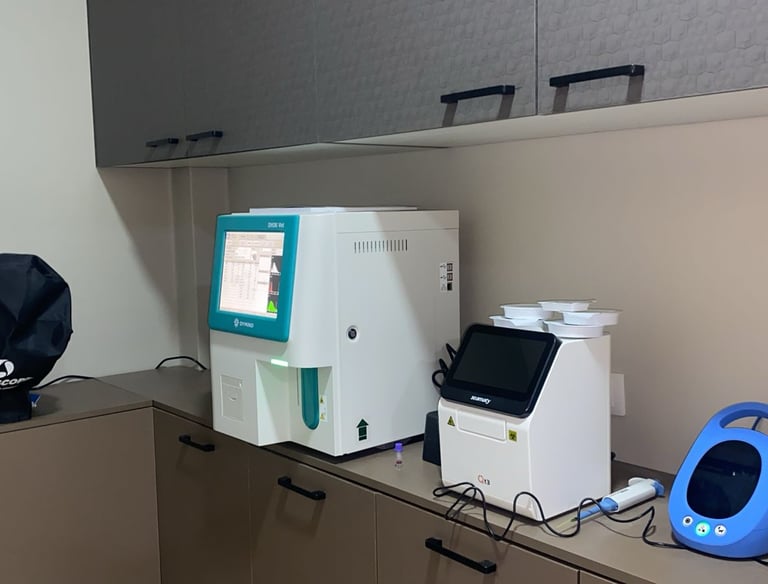 Estamos equipados con una unidad de alta complejidad que incluye laboratorio clínico (hemograma y bioquímica), ecógrafo, microscopio y esterilizadores. Además, aseguramos la estabilidad de nuestros pacientes con monitores de signos vitales y bombas de infusión de precisión.